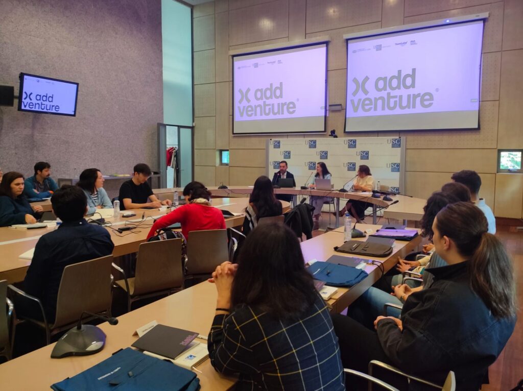 Santiago de Compostela, 8 de mayo de 2025. La tercera edición de AddVenture, programa universitario de emprendimiento e innovación impulsado por los Consellos Sociales de la Universidade de A Coruña (UDC) y la Universidade de Santiago (USC), echa a andar con una jornada inaugural presencial diseñada para activar los primeros pasos de los proyectos de negocio de las personas participantes.